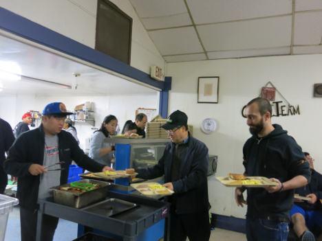 추수감사주일을 맞아 작은나눔(대표 박희달)의 자원봉사자들이 20일 오클랜드 시티 팀에서 노숙자에게 아침 식사를 서브하고 있다.